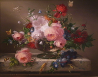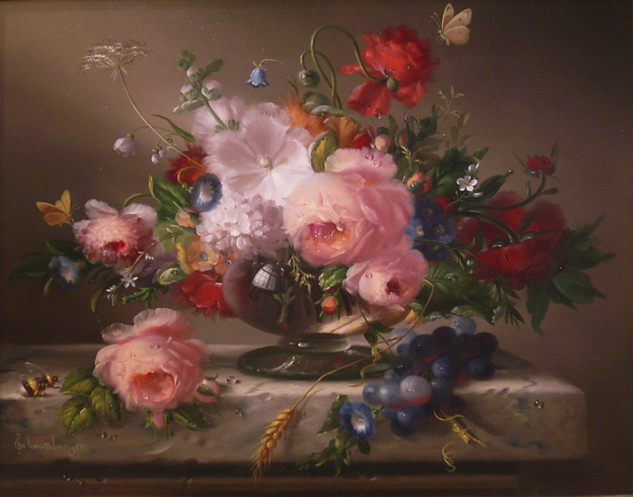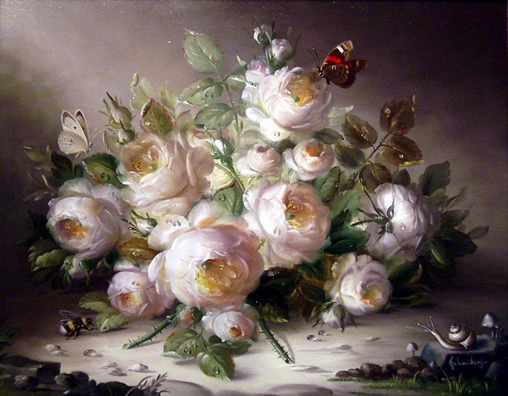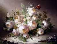 Geboren 1950 in Essen“Rosenstilleben mit Schmetterlingen”Öl-Leinwand, 24 x 30 cm