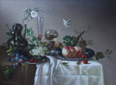 Die Tradition niederländischer Blumenstilleben des 17. Jhdt. setzt Hildegard Schwammberger auf imponierende Weise fort, in dem sie in phantasievoller Zuordnung stets individuelle Formationen formuliert.