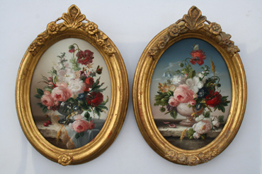Bilderpaar oval je 19,5x14,5 Öl-Holz