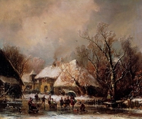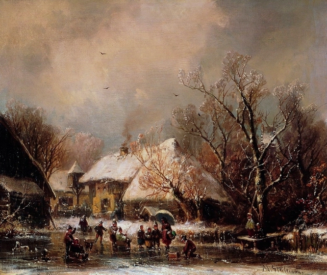 “Winterlandschaft in Oberbayern mit Eisläufern”
